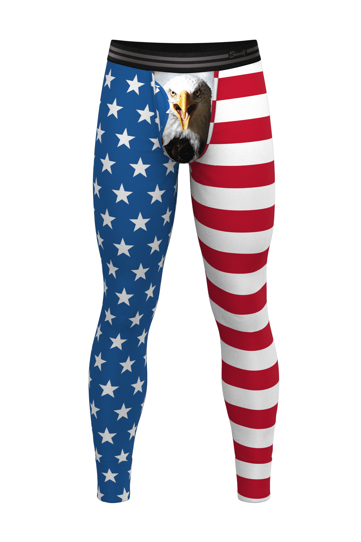 Premium American flag long johns with Ball Hammock pouch, MicroModal fabric, moisture wicking thermal underwear for patriotic comfort.