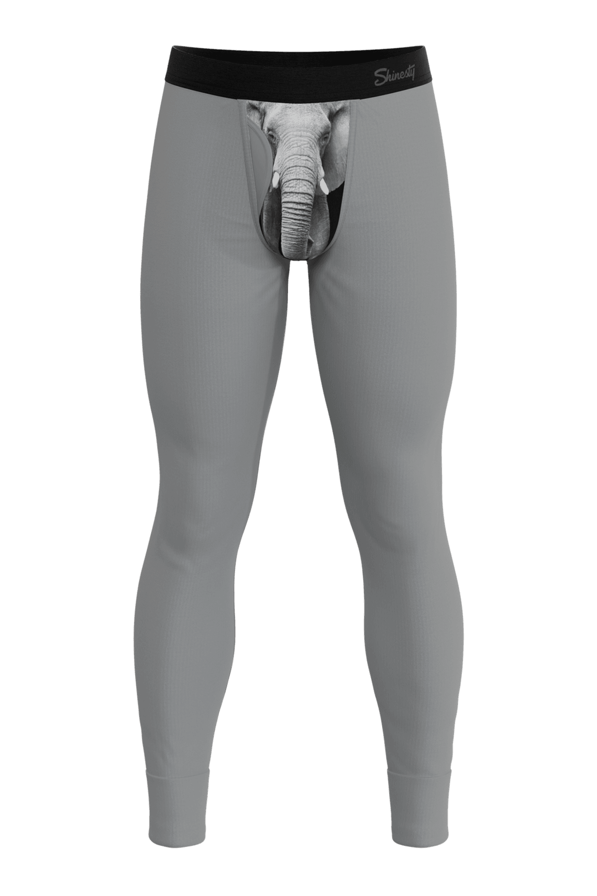 Fun elephant print long johns with Ball Hammock pouch, MicroModal fabric, moisture wicking thermal underwear for playful comfort.