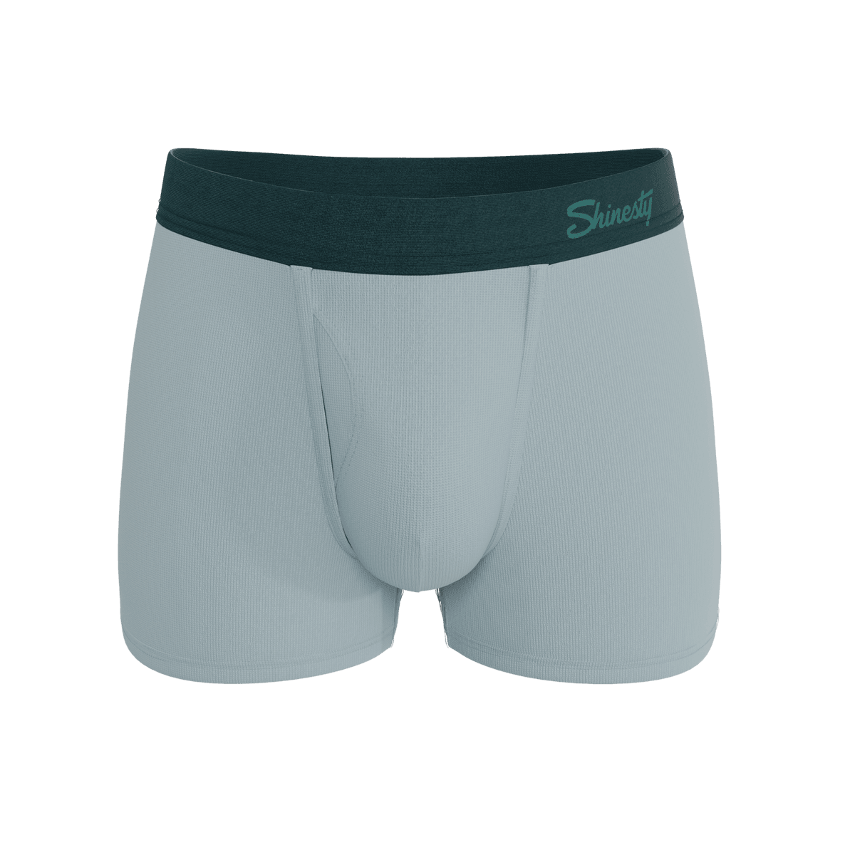 Premium MicroModal trunk underwear in sophisticated steel blue with Ball Hammock® pouch, 3-inch inseam, and moisture-wicking technology.