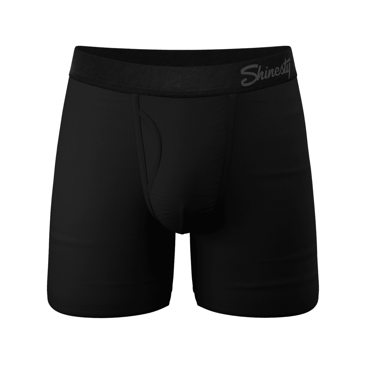 Classic black premium boxer briefs featuring patented Ball Hammock® pouch technology with convenient fly opening. Over 4,000+ five-star reviews from satisfied wholesale customers worldwide.